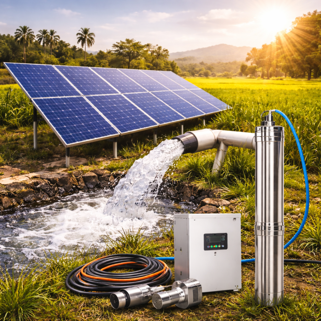Solar water pumps use solar panels to generate electricity and power water pumps, eliminating the need for diesel or grid electricity.